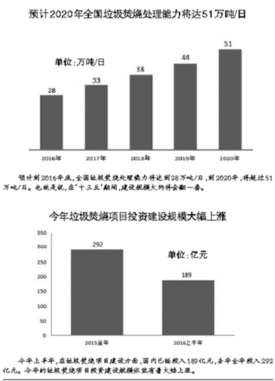 目前,國內(nèi)有一大批垃圾焚燒項(xiàng)目投入建設(shè)。截至今年6月底,在垃圾焚燒項(xiàng)目建設(shè)方面,國內(nèi)已經(jīng)投入189億元,去年全年投入為292億元?!翱梢钥闯觯诶贌?xiàng)目連續(xù)上馬的情況下,今年的垃圾焚燒項(xiàng)目投資建設(shè)規(guī)模依然有著大幅上漲?!?薛濤表示。