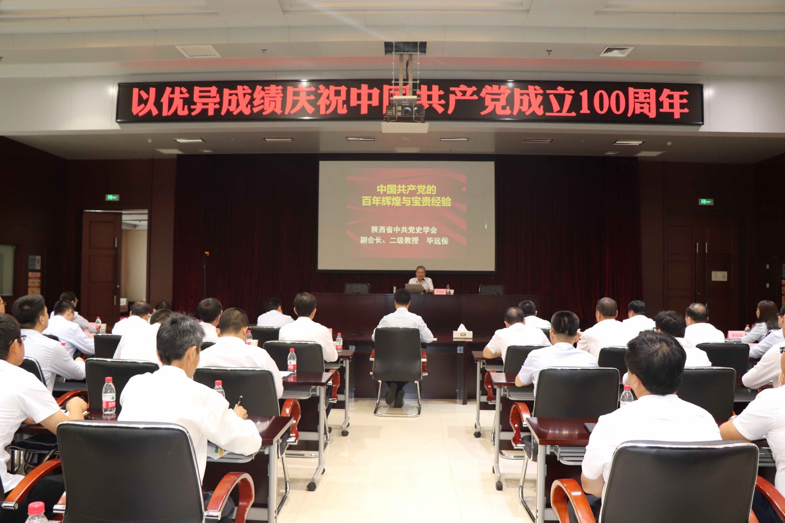 慶?;顒?dòng)上,全體黨員和干部聚精會(huì)神地聆聽了由陜西省黨史學(xué)習(xí)教育宣講團(tuán)成員、陜西省紀(jì)念中國共產(chǎn)黨成立100周年主題展專家組成員畢遠(yuǎn)佞教授,講授的題為《中國共產(chǎn)黨的百年輝煌與寶貴經(jīng)驗(yàn)》的黨課,一幕幕黨的奮斗歷程,鼓舞人心。一件件可歌可泣的事跡,催人奮進(jìn)。為公司黨員和干部注入了豐厚營養(yǎng)。為把汲取的豐厚營養(yǎng),及時(shí)化為前行的力量,三秦環(huán)保股份公司黨總支書記講授了題為《堅(jiān)定信心 乘勢而上 奮力譜寫三秦公司發(fā)展新篇章》的黨課,以“傳承紅色基因、汲取奮進(jìn)力量,把握當(dāng)前形勢、搶抓發(fā)展機(jī)遇,深化企業(yè)改革、激發(fā)發(fā)展活力,咬定目標(biāo)任務(wù)、抓好工作落實(shí)”等為主要內(nèi)容,動(dòng)員黨員和干部率先垂范、奮勇前進(jìn),全力推動(dòng)企業(yè)發(fā)展上水平、上臺(tái)階。